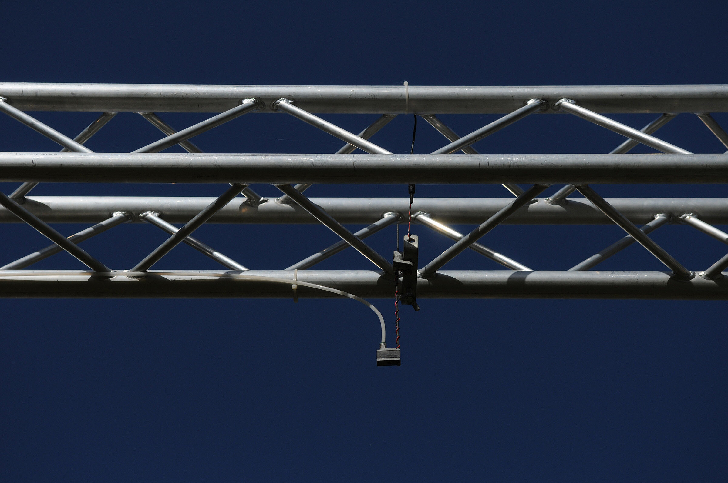 Sound is created by variations of pressure in the air. For example, a loudspeaker has a moving membrane that can cause these changes in air pressure. This can also be done with air valves, as Dutch sound artist Edwin van der Heide illustrates in his public sound installation Pneumatic Sound Field. A timed release of compressed air from a pneumatic valve creates a brief pressure change combining a strong emission of air and a piercing hissing sound. Van der Heide is interested in the musical possibilities of this simple sound. An aluminium construction with 42 valves creates a spatial sound field above the listener’s heads, with hissing pulses whizzing from left to right, forming rhythms that, when repeating themselves quickly, can create different tonalities.